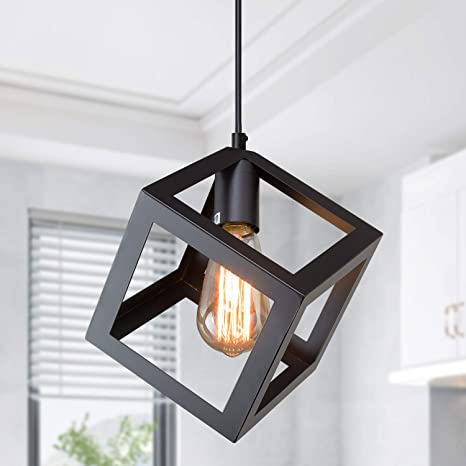 Vintage Industrial Pendant Light Hanging Fixture, Black Pendant light indoor Industrial lighting for Bedroom Dining Room black vintage Restaurant hanging lamp.